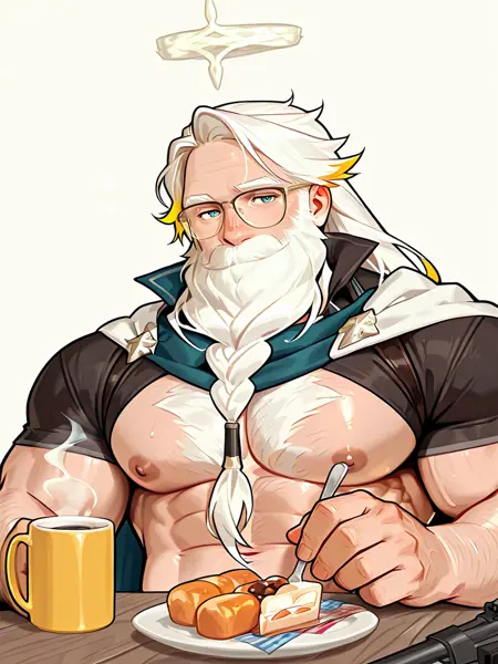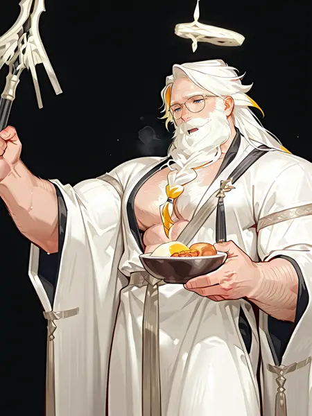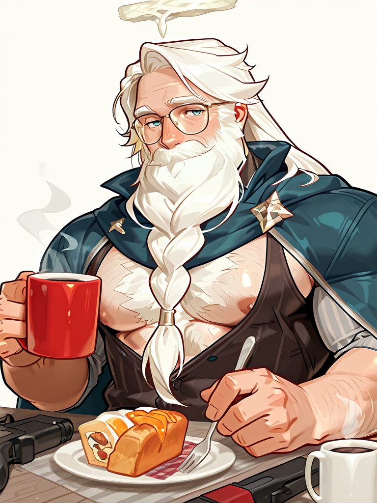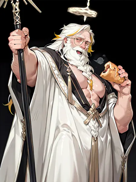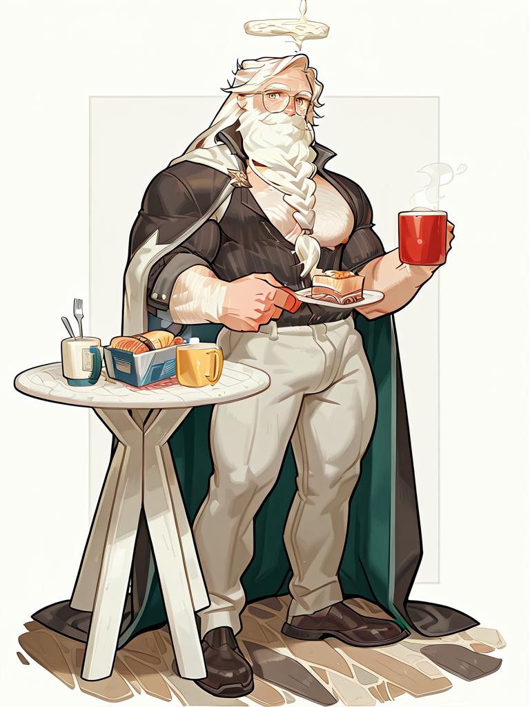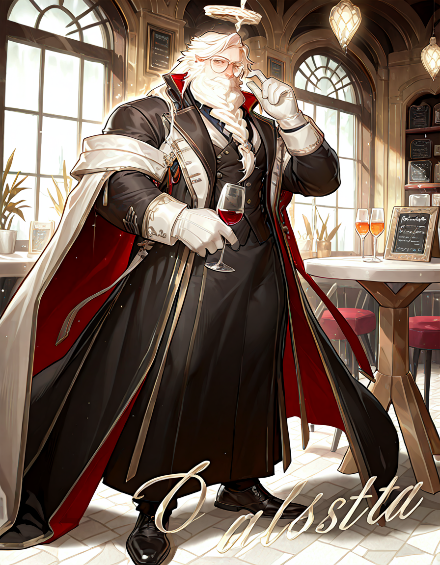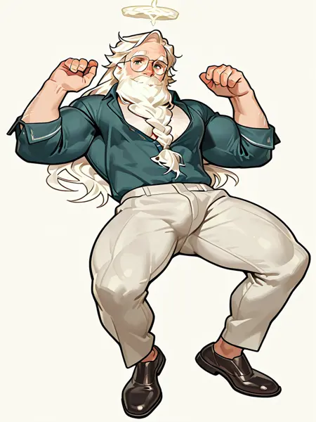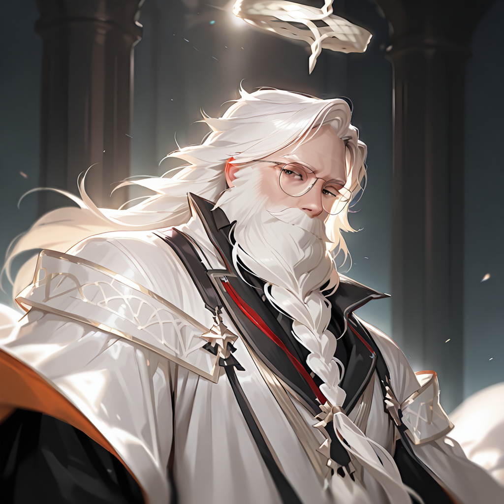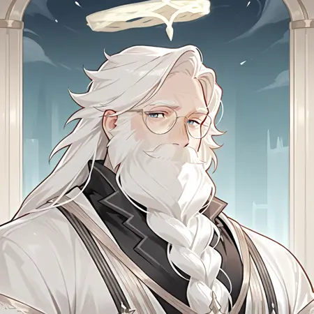 클래식: 흰 수염, 환상, 흰 로브, 흰 머리카락, 안경, 흰 장갑, 날개
