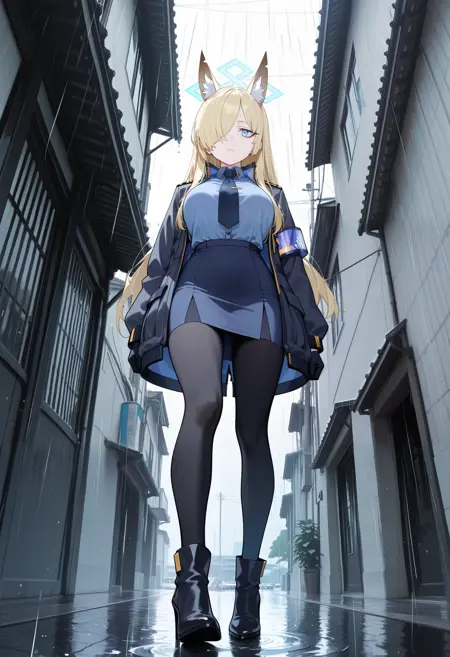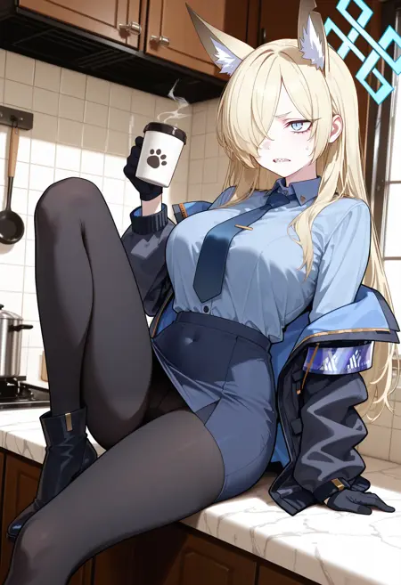外观标签:kanna (blue archive),蓝色光环,动物耳朵,金发,大胸部,头发遮住一只眼睛,长发,(高度细致的蓝色眼睛:1.4),动物耳朵绒毛,(高度细致的尖牙:1.4),额外耳朵,缺刻耳
