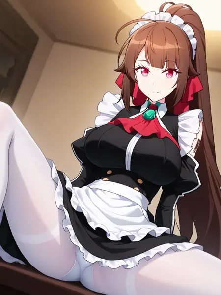 amagi,brown hair,very long hair,ahoge,ponytail, bangs, red eyes