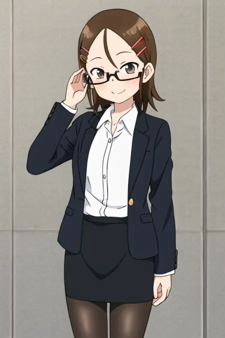 tenkawa_yukari, 1girl, brown eyes, brown hair, glasses