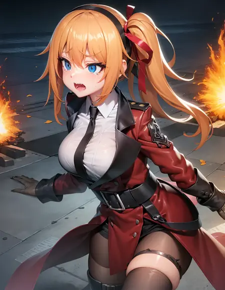KalinaGK,格里芬与克鲁格军事制服,白色衬衫,领带,侧马尾,眼镜戴在头上,单肩露背,圆框眼镜,丝袜