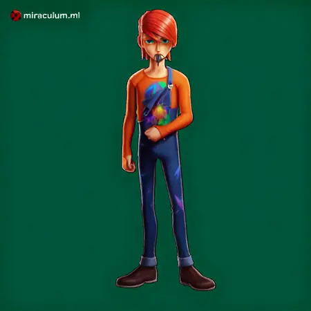 caprikid, 英雄, 男性, 角, 拟人化, 面具, 短发, 连体衣, 画笔, 橙色头发, 眉间头发,