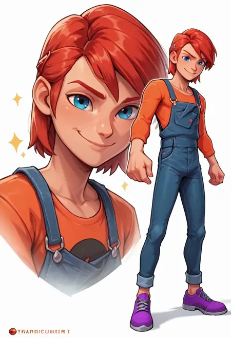 nathaniel, kurtzberg, 短发, 蓝眼睛, 橙色衬衫, 工装裤, 牛仔布, 牛仔裤, 紫色鞋子,