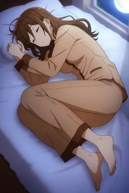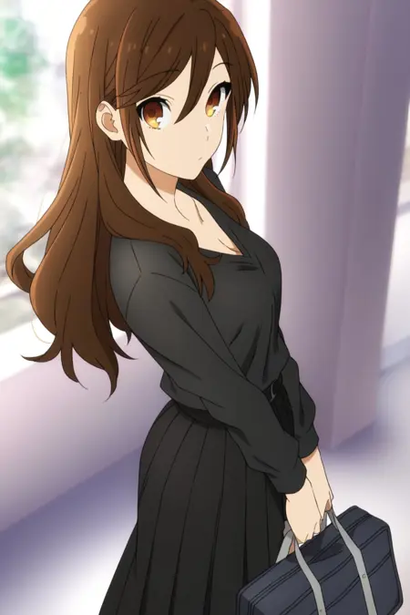 프롬프트: masterpiece, best quality, amazing quality, fine details, Kyouko Hori, solo, breasts, medium breasts, long hair, brown hair, bangs, hair between eyes, brown eyes,