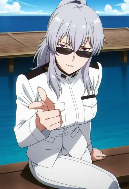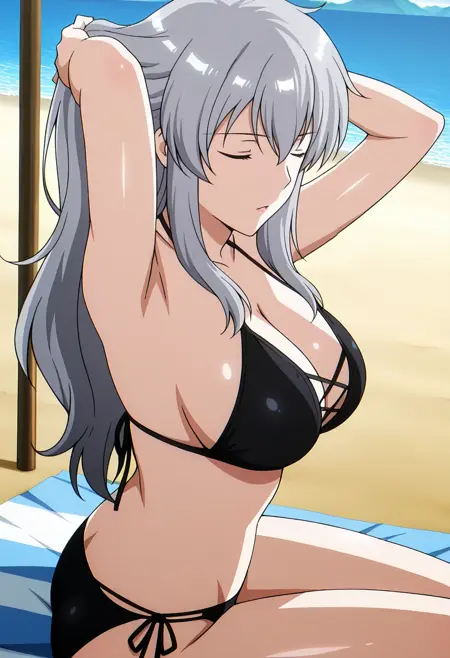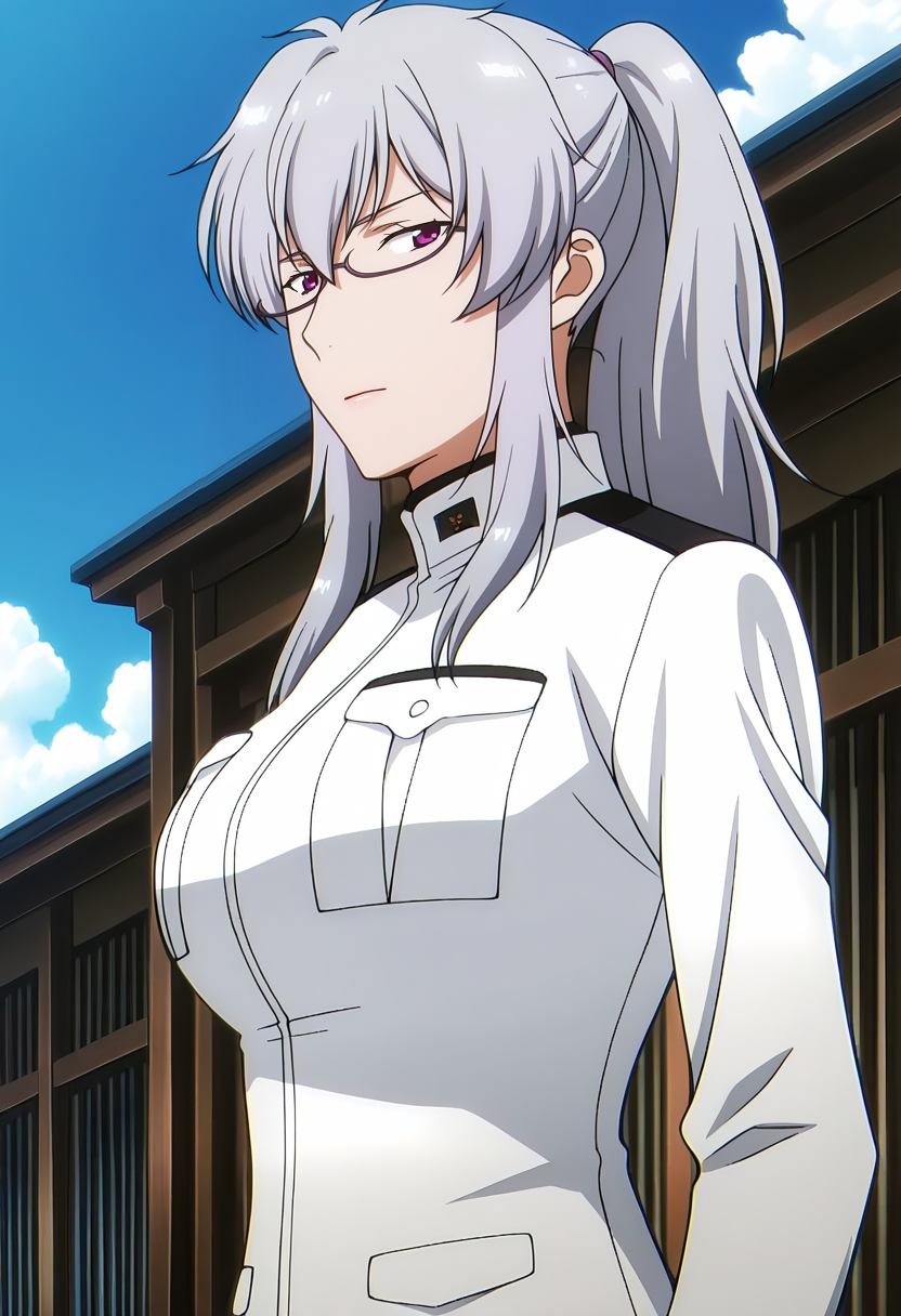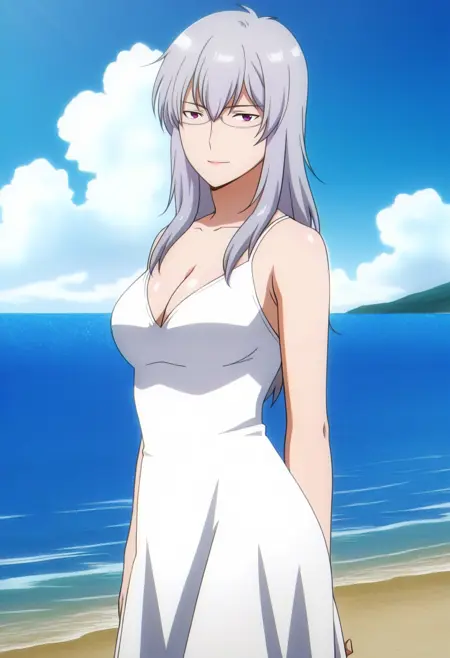 saekis3, long hair, grey hair, hair between eyes, mature female