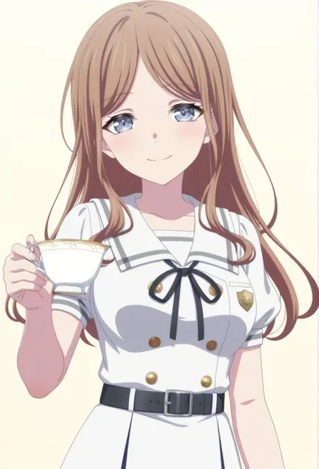 <lora:Nagasaki SoyoV1-Nuclear1811-IL:1>,Nagasaki Soyo,blue eyes,brown hair,long hair,bangs,parted bangs,ch2,ch2 ribbon,ch2 neck ribbon,ch2 black ribbon,ch2 collarbone,ch2 school uniform,ch2 school badge,ch2 serafuku,ch2 sailor collar,ch2 puffy sleeves,ch2 short sleeves,ch2 puffy short sleeves,ch2 dress,ch2 white dress,ch2 sailor dress,ch2 belt,ch2 black belt,ch2 belt buckle,ch2 buttons,ch2 double-breasted,ch2 socks,ch2 white socks,ch2 shoes,ch2 brown footwear,ch2 loafers,