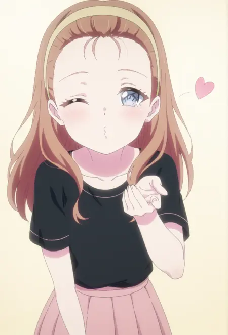 <lora:Nagasaki SoyoV1-Nuclear1811-IL:1>,Nagasaki Soyo,blue eyes,brown hair,lts,lts long hair,lts bangs,lts forehead,lts child,lts hairband,lts yellow hairband,lts collarbone,lts shirt,lts black shirt,lts short sleeves,lts skirt,lts pink skirt,lts pleated skirt,lts socks,lts black socks,lts slippers,lts yellow footwear,lts yellow slippers,