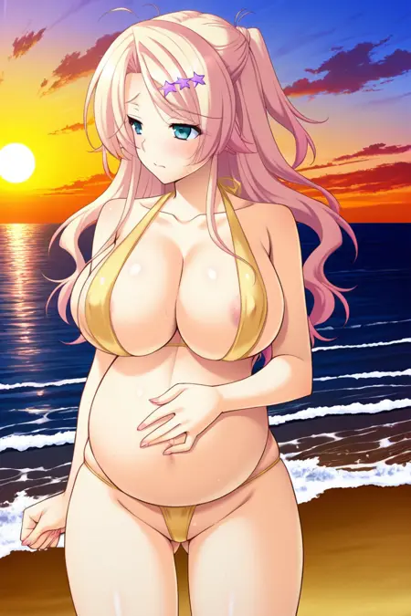 임신용 비키니: 노란색 슬링숏 비키니, G-스트링, 임신, 거대한 배