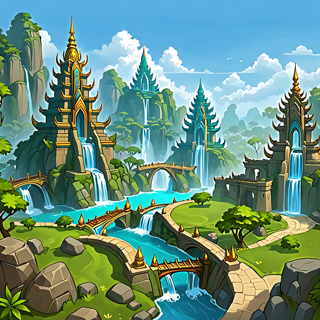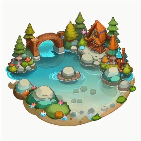 主に等角プロップやアイコンの生成に使用しますが、ファンタジー風の風景や建築物、人物の生成にも適しています。