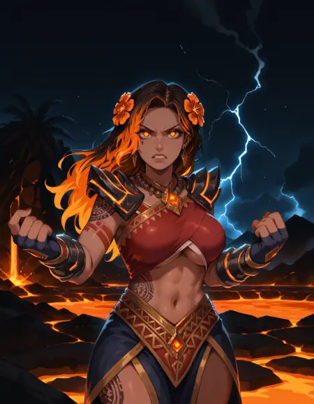 Pele is the goddess of Fire, of Dance and Wind, of Volcanoes and Violence. Pele is both a destroyer and a creator. Through her mastery over the world’s molten core, she wrought the Hawaiian Islands into being, forging them from the lava that ruptured forth from the mouths of her volcanoes. They are places of immense beauty, lush and brimming with life, and by looking upon and reveling in such beauty, you offer Pele worship.[