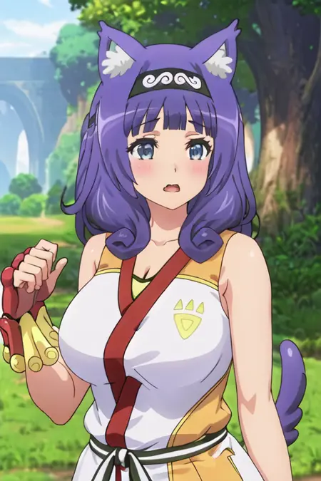 트리거 단어는 hitamu_kyan_futokunoguild이며, 권장 태그는 best quality, masterpiece, highres, solo, {hitamu_kyan_futokunoguild:1.15}, purple_hair, bangs, animal_ears, blush, animal_ear_fluff, blunt_bangs, hairband, breasts, blue_eyes, open_mouth, long_hair, cat_ears입니다.