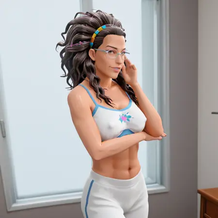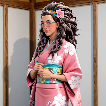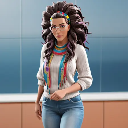 触发词:olivia, 1girl, 深色皮肤, 眼镜, 深色皮肤女性, 长发, 实验服, 黄框眼镜, 大发髻, 棕发, 棕色眼睛, 卷发, 嘴唇, 线圈发辫, 上衣, 头饰, 珠宝, 围巾, 化妆