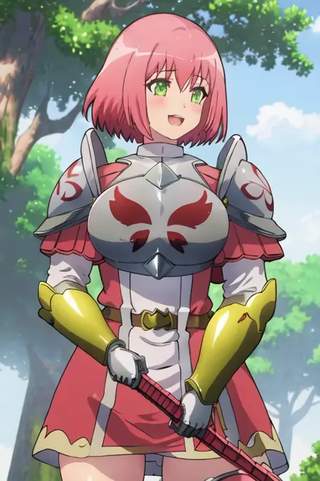The trigger word is hanabata_nohkins_futokunoguild, and the recommended tags are best quality, masterpiece, highres, solo, {hanabata_nohkins_futokunoguild:1.15}, pink_hair, short_hair, blush, green_eyes, open_mouth, breasts, large_breasts.