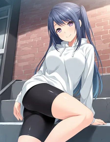 outfit02,连帽衫,白色连帽衫,抽绳,拉链,锁骨,袖子,短裤,黑色短裤,骑行短裤,