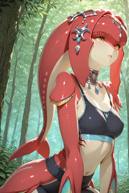 1girl,Mipha,Zora,fish girl,colored skin,multicolored skinSkin: Red with pale and white accents (Zora skin pattern)