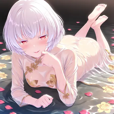 이 LoRA는 투명한 얇은 실크 소재의 질감을 매우 잘 표현하며, 특히 물속에서 치마가 흐를 때 치마에 인쇄된 무늬가 얇은 천과 함께 수면 위에 펼쳐지는 모습이 매우 아름답습니다.