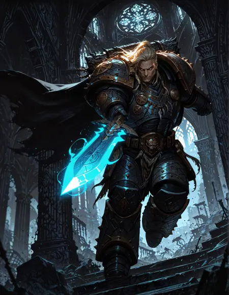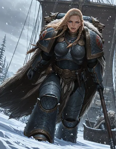 这个LoRA专为插画设计,旨在帮助你创作《战锤40K》世界中太空狼军团的原体莱曼·厄尔。