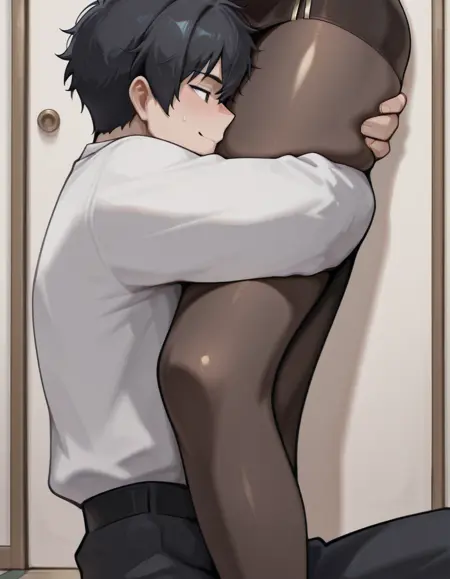 worship thigh/leg and head_between_thighs (逆肩車)(クンニ)