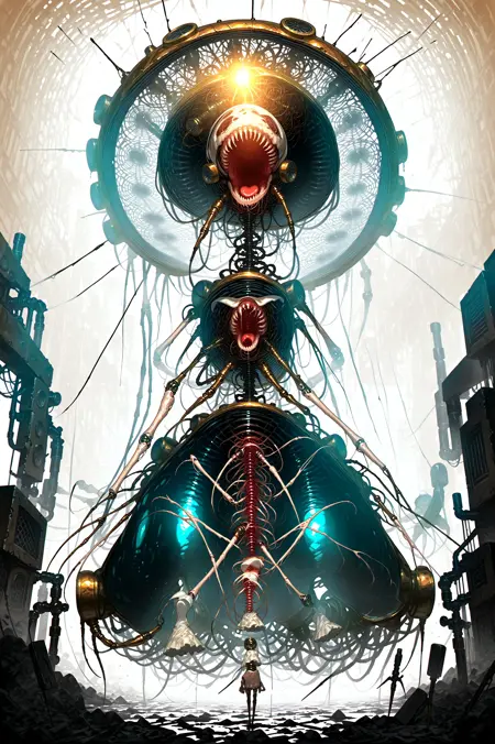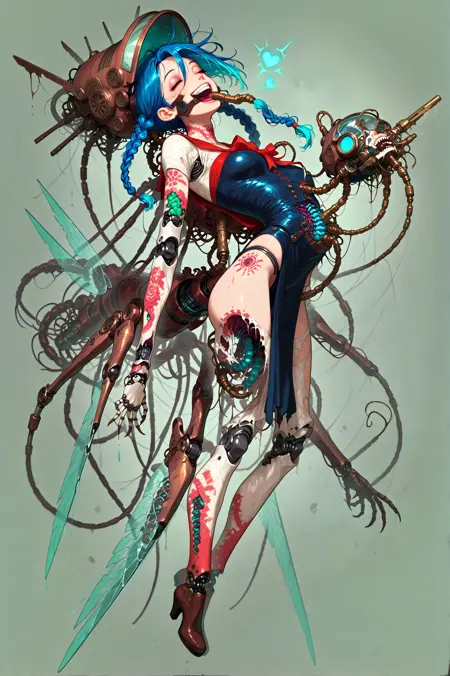 Paying homage to Megrim Haruyo and their macabre biomechanical weaponized waifus*, this LoRA can help you bring your characters out of their comfort zone and into nightmarish configurations of steel and flesh. Or maybe some subtle changes that hint at your budding transhumanism, if you're not quite ready to swap out everything for engineered meat and 20 extra points of articulation.
