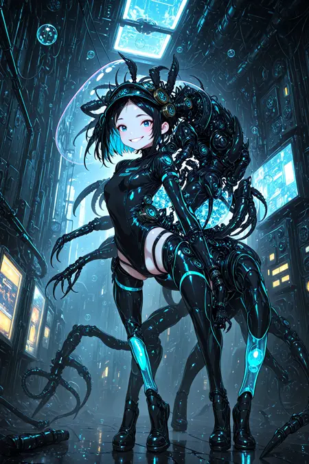 Paying homage to Megrim Haruyo and their macabre biomechanical weaponized waifus*, this LoRA can help you bring your characters out of their comfort zone and into nightmarish configurations of steel and flesh. Or maybe some subtle changes that hint at your budding transhumanism, if you're not quite ready to swap out everything for engineered meat and 20 extra points of articulation.