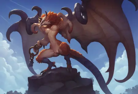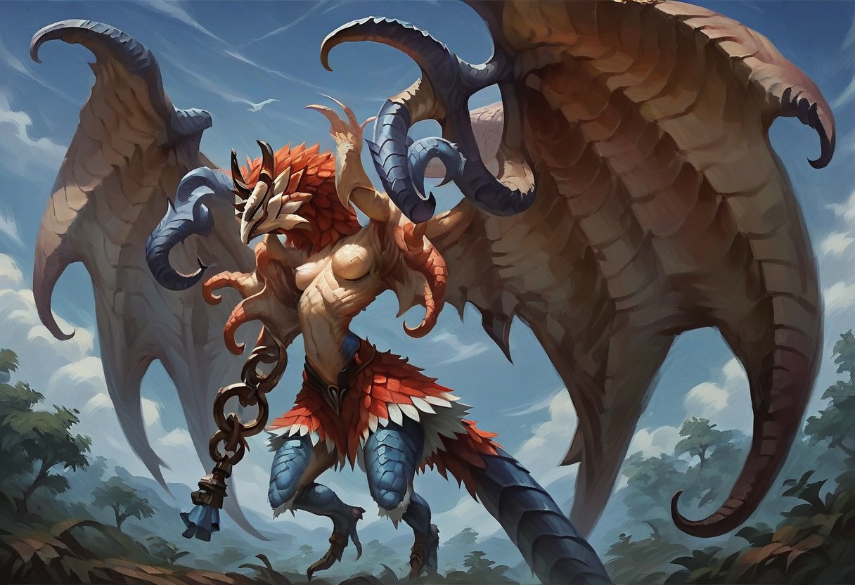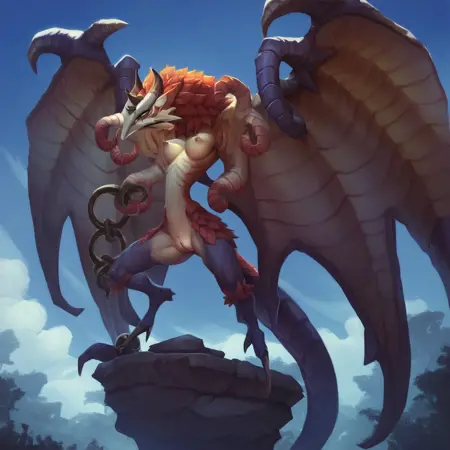 标签为:“valef0r, 怪物, 翅膀, 爪子, 角, 尾巴, 乳房, 链条”。