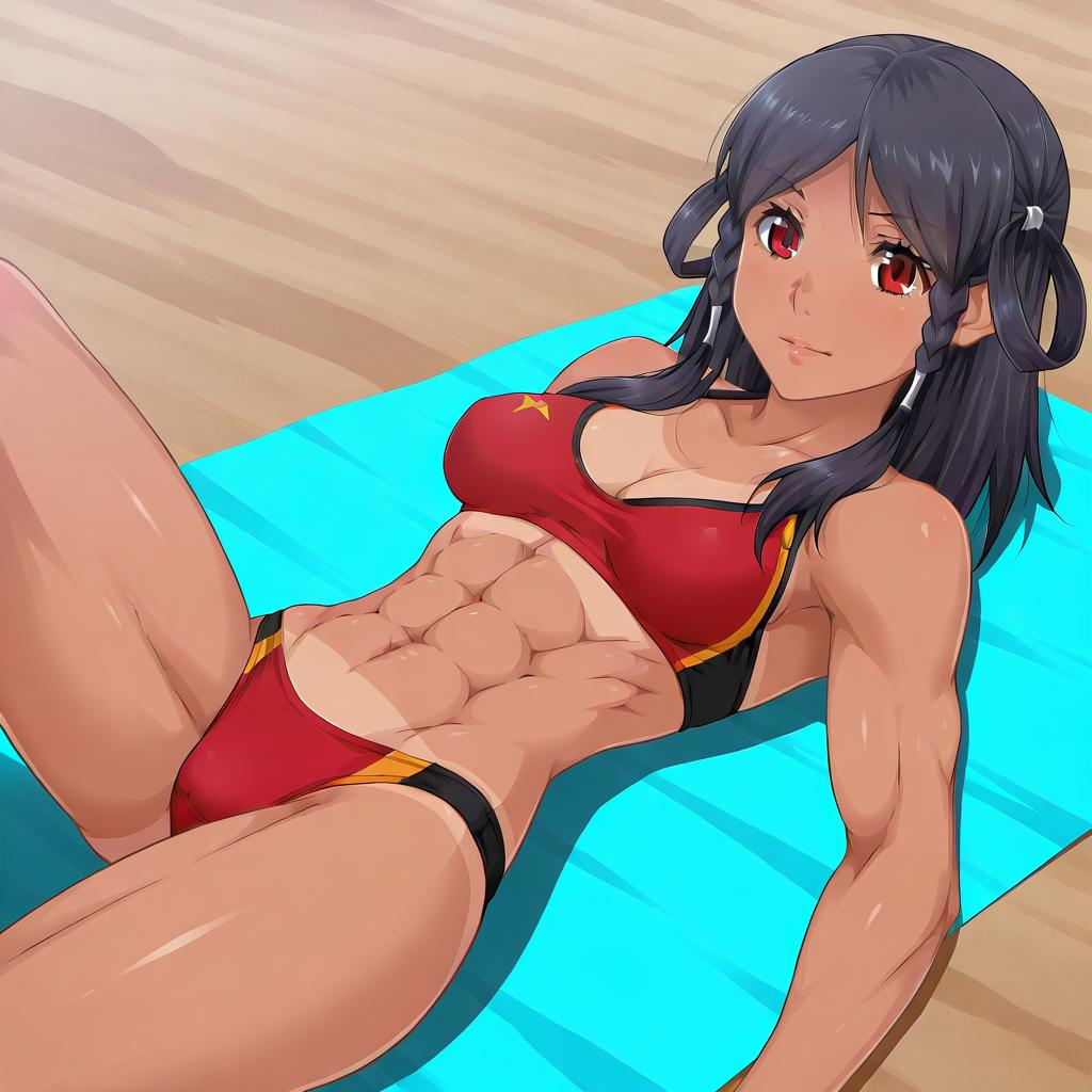 Recommended tags, "Tanned, tan lines, abs, muscular"
