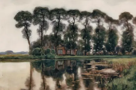 • 他的早期风景画,例如《柳林:光影印象》(约1905年),体现出对海牙画派巴比松画派的影响——两者均以柔和色调和对大气效果的关注著称。