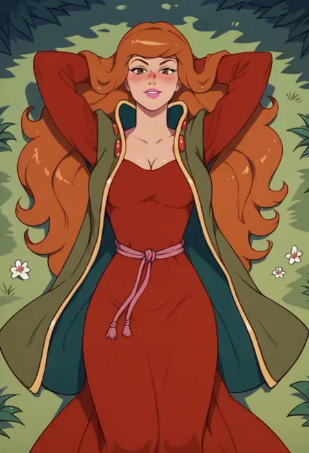 JetLagEvilQueen, 1girl, brown hair, orange hair, lips, lipstick, makeup, brown eyes, breasts, medium breasts,