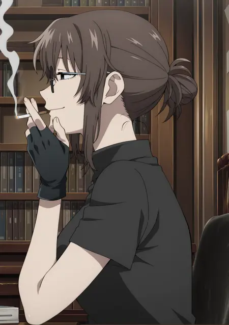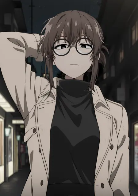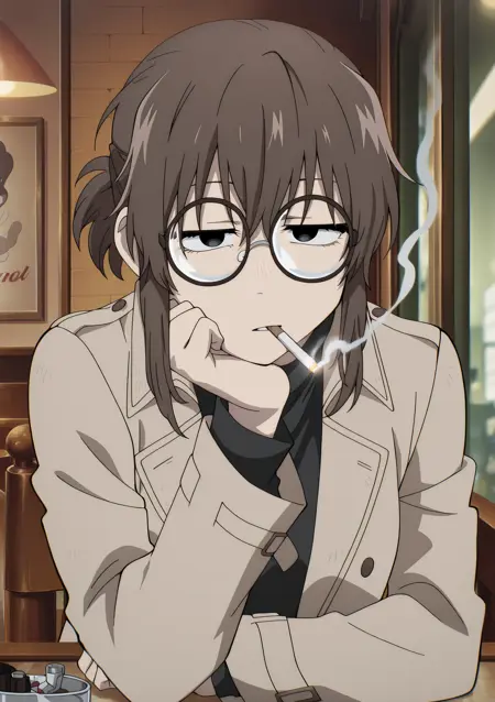 Anko, glasses, brown hair, round eyewear, sidelocks, bangs, black eyes,