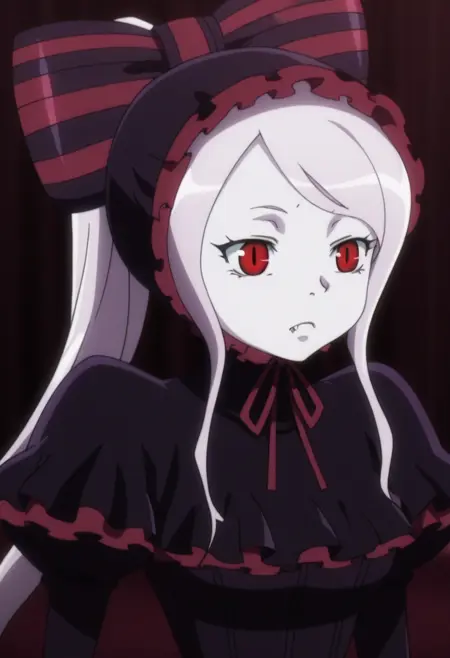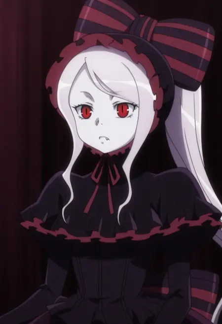 触发词 = zzshalltearbzz,标签 = 长发,1个女孩,蝴蝶结,单独,头发蝴蝶结,红眼,吸血鬼,獠牙,条纹蝴蝶结,花边,连衣裙,白皙皮肤,动漫上色,马尾辫,帽子,微笑