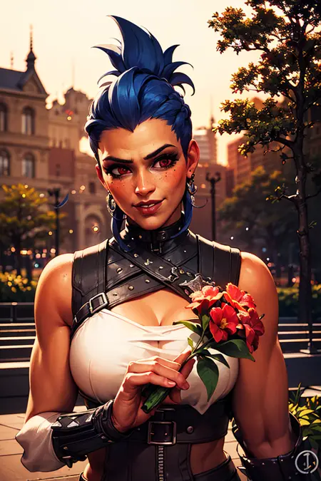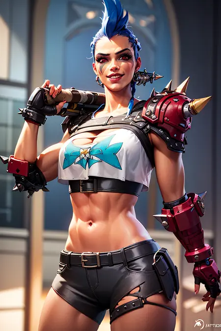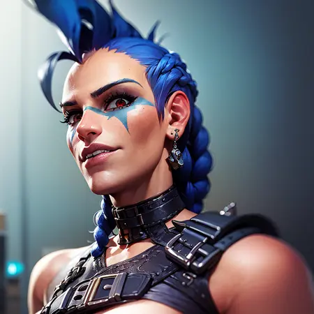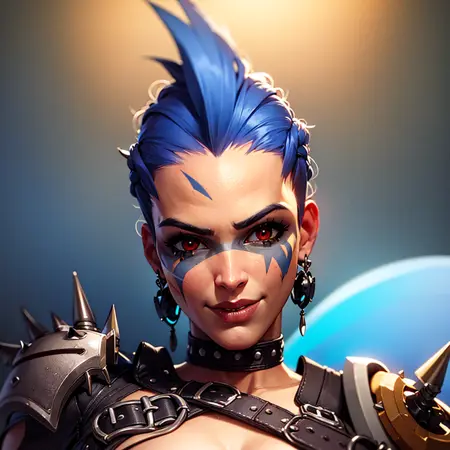 你还可以通过以下提示词进一步优化:mohawk, blue hair, warpaint, red gloves, pauldrons