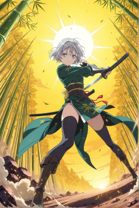 기본: sanya, 1girl, 녹색 눈,은색 머리, 단발