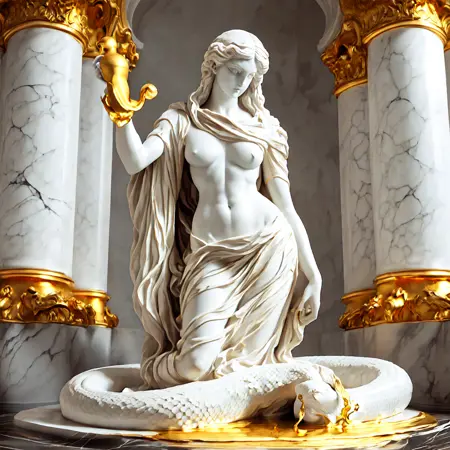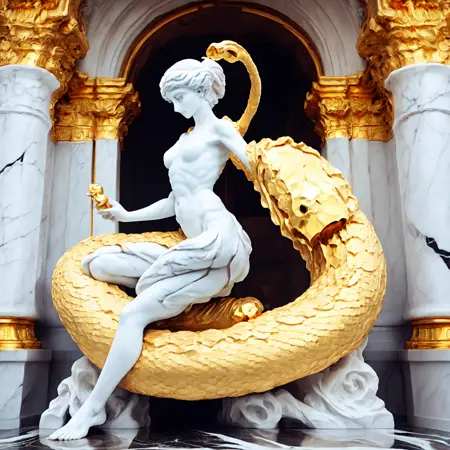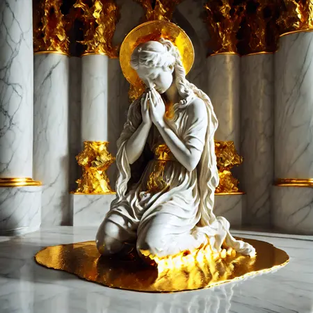 황금 장식이 있는 대리석 조각상을 꿈같은 이상주의적 배경에 몰입시켜 생성하는 모델입니다. 아름답고 미적인 조각을 생성하도록 최적화되었지만, 가중치를 조정하고 충분한 인내심을 갖는다면 원하는 대로 생성할 수 있습니다. 액체 금도 지원합니다.