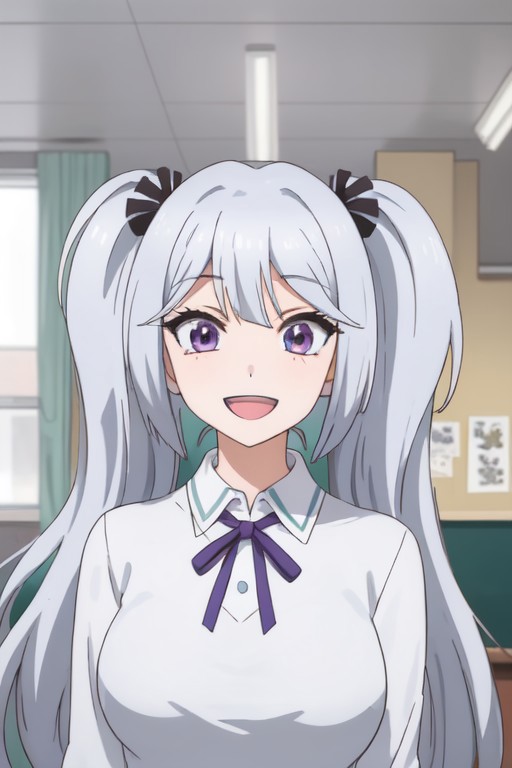 Lora-scale: 0.6-0.8트리거 단어: sakai tama, 보라색 눈, 긴 머리, 회색 머리, 트윈테일