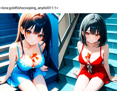 注意:由于 Illustrious XL v0.1 对内置的“捞金鱼”反应过于强烈,训练材料难以被 LoRA 学习。因此我改用 Anyillustrious XL_v0.1.1 进行训练,但提示效果变弱了。这种减弱只是减少了惊喜感,更接近之前使用 Pony 的感觉。(ILXL)