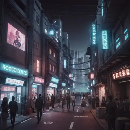 「基础模型生成的城市背景在我看来不够高科技,也不够杂乱,甚至不够赛博朋克,顶多就是夜晚满是日本招牌的街道。于是我根据自己理想中的赛博朋克都市形象,制作了背景图。由于支持Lycoris级别的分层结构,我认为使用多层构图效果会更理想。但目前的问题是,电子广告牌上的女性形象丑陋且扭曲,我还没找到解决方法。」