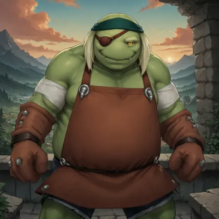 트리거 단어: Trollsmith, 몬스터, 트롤, 색깔 있는 피부, 녹색 피부, 흰 머리, 머리띠, 탈모, 안대, 앞치마, 붕대, 장갑, 반바지,
