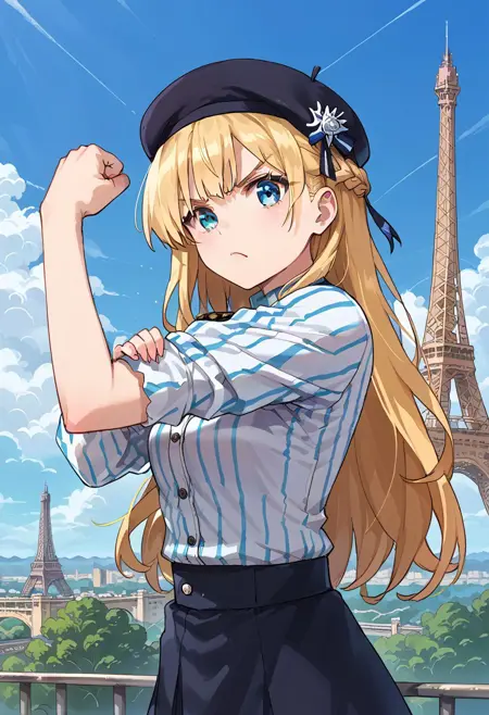 A positive, friendly Japanese gesture that happens to carry a completely different meaning in Europe and Latin America. It's largely unknown in the US and if it were to be recognized as anything, it would be the slightly different (hand higher up) “Rosie the Riveter pose”. As far as I'm aware there's not even a true English name for the gesture, just literal translations of various European names. Remember to check my profile with X and XXX visibility set to off (use the eye icon) for a bunch of LoRAs the credit card companies don't want you to see!