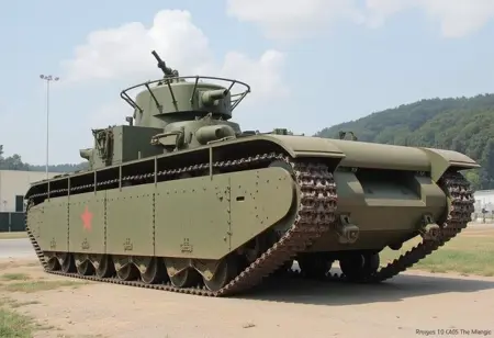 전장 9.72m, 무게 58t의 이 거대한 전차는 총 다섯 개의 포탑을 장착하여 전차라기보다는 육상의 전함이라고 부르는 것이 더 적절합니다. 12명의 승무원이 운영했으며, 총 63대가 생산되었습니다.