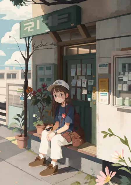 这是一个扁平风格的手绘插画lycoris模型,保留有非常明显的手绘痕迹,比如色块、粗糙的笔触,对造型的概括等。色调比较温和,不会有过于纯的颜色或不和谐的颜色出现。如果想让你生成的画面颜色更鲜艳一些,可能需要你手动进行后期调色,但目前的这种色调对我而言是最舒服的。