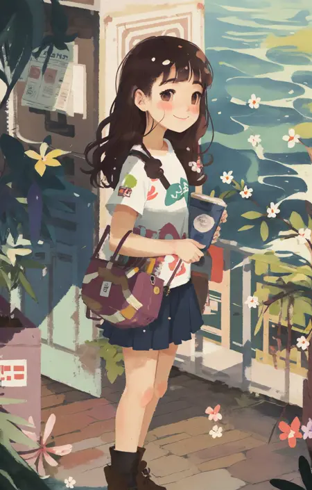 This is a flat style hand drawn illustration lycoris, retaining very obvious hand drawn traces, such as color blocks, rough strokes, and a summary of the shape. The color tone is relatively gentle, and there will be no overly pure or disharmonious colors appearing. If you want to make the color of the image you generate more vibrant, you may need to manually adjust the color in the later stage, but the current color tone is the most comfortable for me.