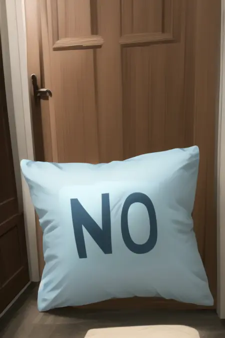 The pillows have "Yes" and "No" written on the sides, respectively.