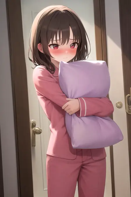 pillow hug/ holding pillow with speech bubble Concept LoRA