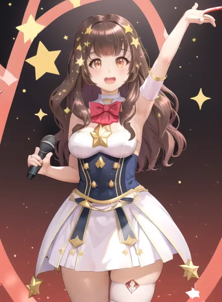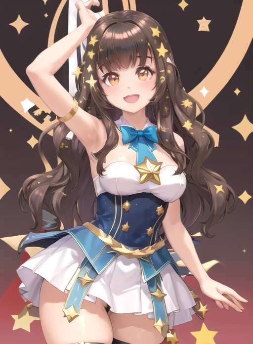mimibits, long hair, breasts, star hair ornament, brown hair, hair ornament, yellow eyes