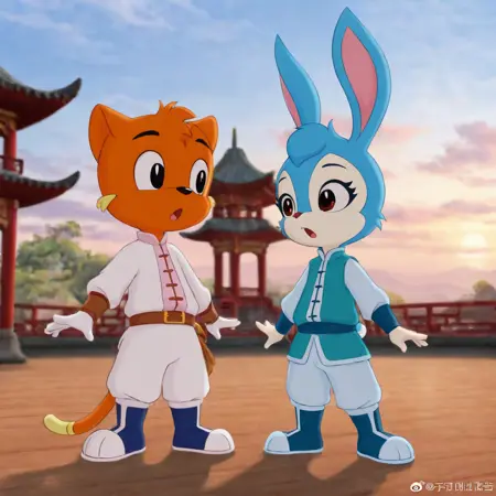 duo, cub, Lantu, Bilibili, bunny, cat, 1girl, 1boy