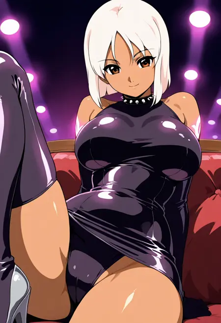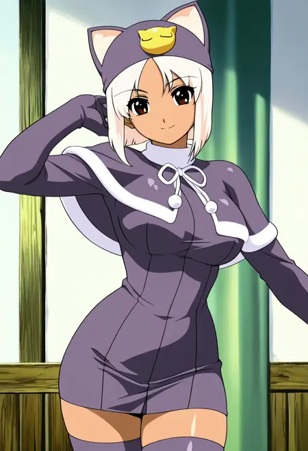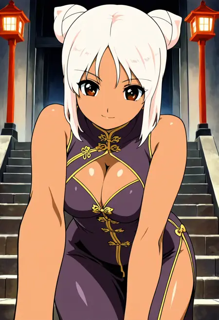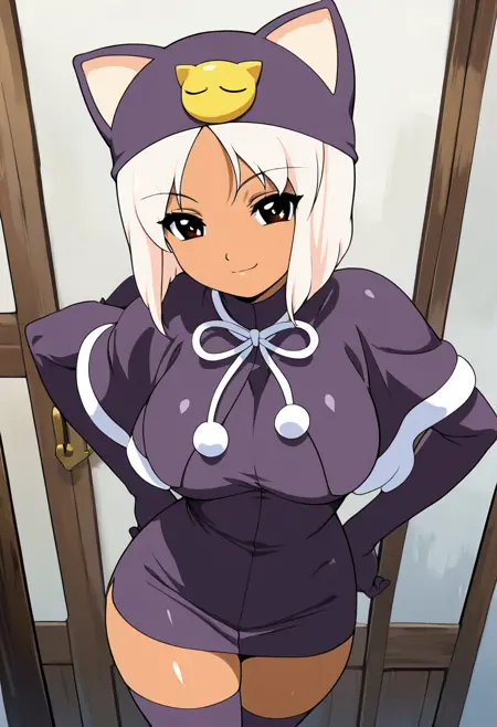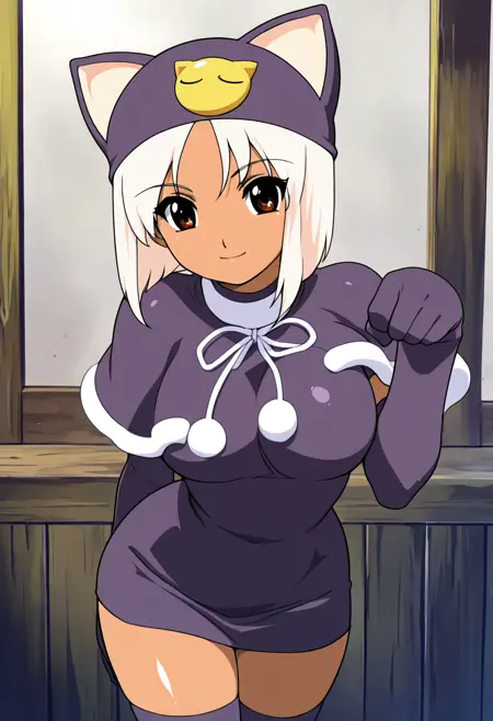 zzMeow,棕色眼睛,白发,深色皮肤,