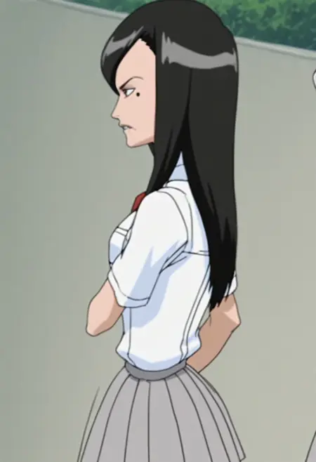 kunieda, school_outfit, beauty_mark, black_hair, long_hair, lip_glow