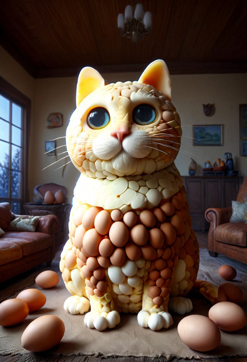 "Eggs Morph" is a whimsical and surreal LoRA concept born from an Easter event running gag, specifically created for icy799, who - since the infamous "Egg Hunt" - claims to see eggs everywhere. This LoRA transforms animals, landscapes and even objects into forms composed of egg textures and structures. From dogs and cats made of layered eggshells to towering egg trees and bizarre egg creatures, this model embraces a vibrant, fantastical world where eggs are the building blocks of all existence. It's playful, slightly absurd and perfectly suited for comedic, imaginative or seasonal themes. Eggtastic 😁