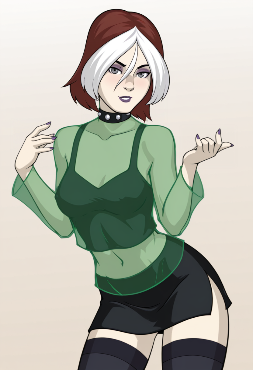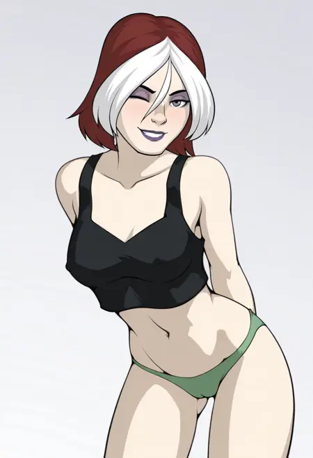 Rogue-like: Evolution에 묘사된 Rogue를 위한 Illustrious LoRA. 표시된 이미지는 waiNSFWIllustrious v12와 Prefect Illustrious v1로 강도 1로 생성되었지만, 0.7-1.0 범위에서도 작동하며, 0.7에서는 스타일이 크게 감소합니다. 이 버전은 핑거 버전보다 녹색 메시 상의/검정 치마 복장 생성이 약간 더 나은 편이지만, 여전히 성공률이 불안정합니다.
