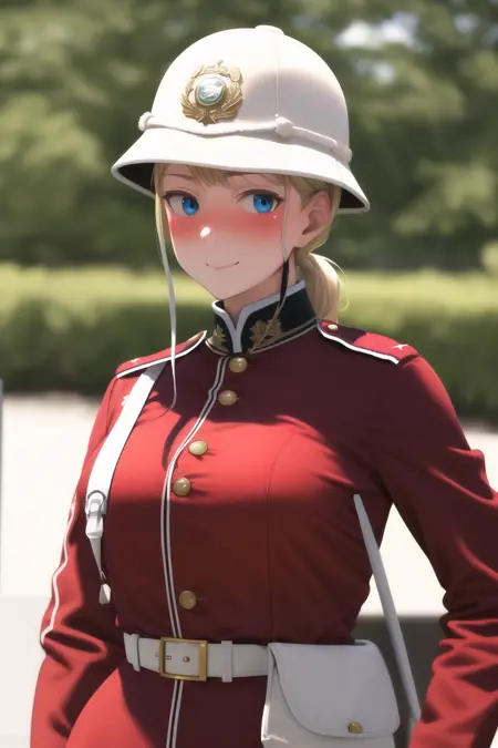 這是一個新訓練的LORA,我命名為redcoat,主要用了19~20世紀英軍士兵的制服進行訓練。我嘗試將所有裝備套件、帽子、衣服等主要特徵都做了單獨概念訓練,於是可以實現pith helmet或shako cap的換裝、維多利亞時代紅衫龍蝦兵或一戰卡其土色風格的換裝,蘇格蘭人團和普通步兵團的換裝等概念區分。